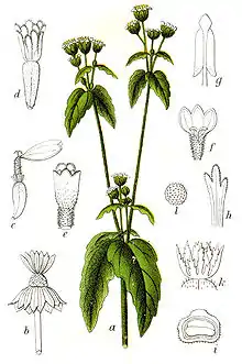 Plants of the genus Galinsoga arrived in Europe from the Americas; by 1776 they were found in Kew Gardens and in 1794 in the Botanical Gardens of Paris and Madrid.[1][2]