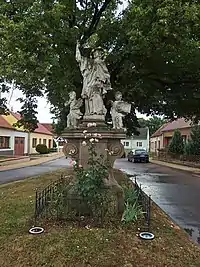 He favored certain religious figures; notably Saint John of Nepomuk, with statues in Wolframitz (Olbramovice), 1728), Neumühl (Nové Mlýny, 1731) and Kanitz (Dolní Kounice, 1735). A wooden statue (1740), originally in Nikolsburg, is now at the Moravian Gallery in Brno. He always changed the composition and expression, to match the statue's specific settings. Another favorite iconographic motif was Saint Florian.