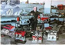 The 850 cc engine was particularly significant because it was the first engine completely built by Bandini: it was the basis for the subsequent Bandini 1000 cc engine. The engine featured a monobloc bottom end, and choice of sidedraft or downdraught carburettors, fuel injection, or intercooled turbocharging. At the same time, Bandinis continued to appear in the United States powered by engines from Mercury, Saab, Offenhauser, MG, O.S.C.A., Alfa Romeo, and even 365 ci (6 liter) Cadillac engines (in the fashion of the Allard J2).