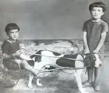 Ilario and his brother Gualtiero (Walter) with their first wheeled vehicle.
