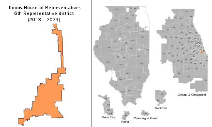 1. 1 2 "STATE LEGISLATIVE DISTRICT REFERENCE MAP (2022): Illinois - State House District 6" (PDF). United States Census Bureau. October 12, 2022. Retrieved February 4, 2023.