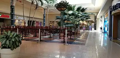 A closed dining area in March 2020 at the Concord Mall in Wilmington, Delaware during the COVID-19 pandemic.