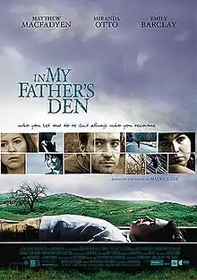 In My Father's Den is a 2004 New Zealand film written and directed by Brad McGann and starring Matthew Macfadyen and Emily Barclay. It is based on the novel of the same title by Maurice Gee. The film was released in October 2004 to glowing reviews.[2]