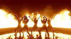 Three teaser videos were released prior to the song's release.[8] An accompanying music video was uploaded to JYP Entertainment's YouTube channel on April 30, 2021. It was directed by Bang Jae-yeob.[22] In three days, the music video reached fifty million views.[23] After one week, the video suprassed over 70 million views.[24] The dance practice video was uploaded on May 2, 2021, and has received over 6 million views as of May 2021.[25] On May 22, 2021, the music video hit 100 million views, which took only 22 days and 12 hours to achieved, becoming the quickest of the group's videos to reach the milestone.[26] The music video opens with Ryujin in a cropped jacket and pleated skirt posing among mannequins in a fashion shop. The next scene shows the group all in black while dancing in a streets in a small town. The scene shifts to a quaint floral greenhouse, where Lia is shown singing in a floral gown with Itzy dressed in elegant clothes. Later in the clip, the girl group showcase their fierce choreography on a set decorated with samurai swords. Then, Yuna is shown next to a mirror in a neon green draped dress with a black bodysuit. In the next part, the group is dancing surrounded by flames.