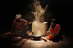 The following year, it produced several performances, which included Jhelum Mein Naupar (The Sailing Boat in Jhelum) featuring stage actress Amtul Baweja and an adaptation of Reginald Rose's famous film Twelve Angry Men as Twelve Angry Jurors[16] at different venues in Lahore. In summers, the group went on their first international tour at the 2nd International SPIC MACAY Convention held in Chennai, Madras, India where they collaborated with Koodiyattam master Margi Madhu from the Chakyar clan for the classical Sanskrit theatre performance of Anguliyankam (The Golden Ring) in June 2014.[17]