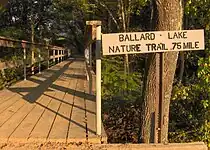 Two official walking trails meander through the park on both sides of Elk Creek. The Indian Mountain Lake Trail is a paved 1-mile (1.6 km) loop that wraps around the east bank of Indian Mountain Lake. The .75-mile (1.21 km) Ballard Lake Nature Trail loops along the forested banks of Ballard Lake. A third unmarked half-mile trail wraps around the pond in the southeast section of the park.[5]