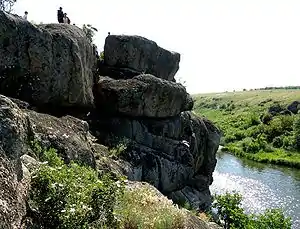 The most picturesque outcrops of the crystalline rocks have their own names. Several legends were composed about them e.g. about the rocks above the Ingul river - “Eagle-owl”, “Pillar” (or “Stone strongmen rock”), “Sleeping beauty”, “Wall” or simply “Ustia” (“estuary”) near the estuary of the Berezivka river where it inflows into the Ingul river. To the south from Rozanivka v. there is another one “Wall” or “Raven rock”, where a couple of ravens nests since olden times. There are also two “Eagle-owls” – “Old” and “Young” ones - here, as well as fantastically beautiful granite outcrops - “The coast of stone chimeras” and the granite plateau in the place of junction of the rivers Stovpova and Ingul, called “Devil’s bridge” etc.