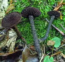 Inocybe tahquamenonensis is an inedible species of agaric fungus in the family Inocybaceae.[1] Found in the United States, it was formally described in 1954 by mycologist Daniel E. Stuntz.[2] The fruit bodies have bell-shaped to convex to flattened caps measuring 1.2–3 cm (0.5–1.2 in) in diameter. Its color is dark purplish brown to reddish- or blackish-brown, with reddish-purple flesh. The gills are attached to the stipe and are somewhat distantly spaced. They are initially reddish brown before turning to chocolate brown, sometimes developing whitish edges. The spore print is brown; spores measure 6–8.5 by 5–6 µm. Fruit bodies grow singly, scattered, or in group under deciduous trees.[3]