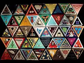 The International Honor Quilt (also known as the International Quilting Bee) is a collective feminist art project initiated in 1980 by Judy Chicago as a companion piece to The Dinner Party.[1][2] The piece is a collection of 539 two-foot-long quilted triangles that honor women from around the world.[3] Through the Flower, Chicago's not-for-profit organization, gifted the collection to University of Louisville Hite Art Institute in 2013 to be available for research and to exhibit.[1]