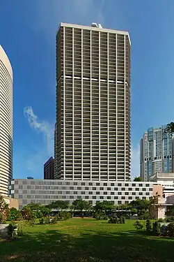 With a height of 190 metres (623 ft),[2] the International Plaza was one of the three tallest buildings in Singapore when it was completed in 1976; the other two were OCBC Centre (201 metres; 659 feet)[3] and DBS Building (186 metres; 610 feet).[4] International Plaza was the tallest commercial building with residential apartments in Singapore.[5] International Plaza was superseded by The Sail @ Marina Bay in 2008.[6][7][8]