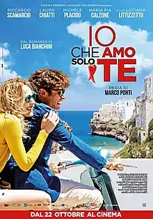 Io che amo solo te (Italian pronunciation: [ˈiːo ke ˈaːmo ˈsoːlo ˈte]) is a 2015 romantic comedy-drama film written and directed by Marco Ponti and starring Riccardo Scamarcio and Laura Chiatti. It is loosely based on a novel by Luca Bianchini, who also collaborated to the screenplay of the film.[1] It debuted at the first place at the Italian box office.[2]