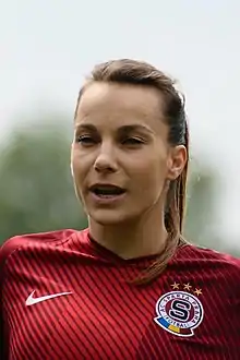Irena Martínková (born 19 September 1986) is a former Czech football midfielder who was a member of the Czech national team.[1][2] For most of her career she has played for Sparta Prague[3] in the Czech Women's First League and the Champions League.[4] Irena is the older twin of Lucie Martínková, who is also a Czech footballer.[5]