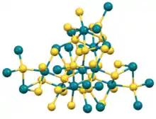 - ↑ Parthée, Erwin; Hohnke, Dieter K.; Hulliger, Fritz (1967). "New structure type with octahedron pairs for rhodium(III) sulfide, rhodium(III) selenide, and iridium(III) sulfide". Acta Crystallographica. 23: 832–840. doi:10.1107/S0365110X67003767.