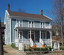 The Jay and Henry Knox House was built in 1860 by two brothers who were bankers. This is one of the few Carpenter Gothic houses in the Twin Cities. The vertical board and batten siding, a trademark of the style, was covered beneath stucco until its new owners began restoring the house in the 1970s.[2]