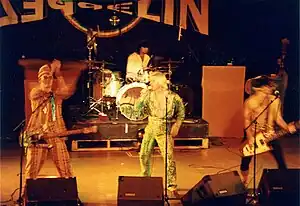 After an exhaustive search for a replacement, it was decided that band bassist, Put-Mon, would take on the vocal duties. Inexplicably taking on the name of Gary B.I.B.B., Put-Mon cut a more trim, youthful, pre-Army era Elvis-like figure.