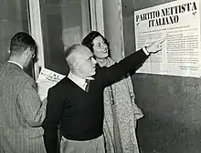 The Italian Nettist Party (Partito Nettista Italiano, PNI), better known as the Steak Party (Partito della Bistecca), was a joke political party founded in Italy in 1953 by publisher Corrado Tedeschi. Considered a forerunner of anti-politics or the first Italian satirical party,[1] the Steak Party took part in the 1953 Italian general election, promising to give people a steak every day.