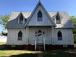 Ivey-Ellington House is a historic home located at Cary, Wake County, North Carolina. The house was built about 1870 in the gothic cottage stye. It is a 1+12-story, "T"-plan, frame I-house with board-and-batten siding. It has a steeply pitched roof, decorative scalloped gable trim, and pointed-arch windows.[2]
