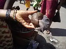 Slow-simmered stews with various ingredients are another common food staple in Côte d'Ivoire.[3] Kedjenou is a spicy stew consisting of chicken and vegetables that are slow-cooked in a sealed pot[4][5] with little or no added liquid. This concentrates the flavors of the chicken and vegetables and tenderizes the chicken.[3] It is usually cooked in a pottery jar called a canari, over a low fire, or cooked in an oven.[3]