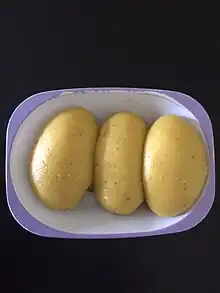 Cassava and plantains are significant parts of Ivorian cuisine. A corn paste called aitiu is used to prepare corn balls, and peanuts are widely used in dishes. Attiéké is a popular side dish in Côte d'Ivoire made with grated cassava and is very similar in taste and consistency to couscous.[1] A common street-vended food is alloco, which is ripe plantain banana fried in palm oil, spiced with a spicy sauce made of onions and chili.[1] It can be eaten alone as a snack or often with a hard-boiled egg, as well as a side dish.