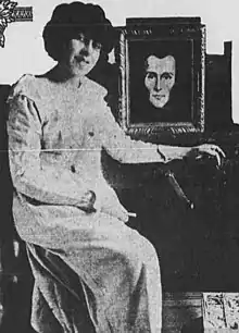 ![]() De Verley with a "life mask" of her husband, 1920 | |