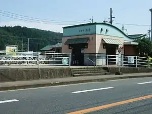The station consists of a side platform serving a single track. A small concrete waiting room/shelter has been set up behind the platform and there is a designated parking area for bicycles nearby. The station is unstaffed and there is no ticket window but kan'i itaku agents sell some types of tickets from nearby shops.[3][2][4]