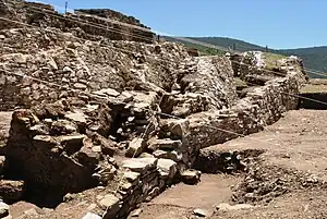 South of the Santa María de la Asunción Museum on Vicente Guerrero Street is the archeological zone of Ixcateopan.[3] The site has been dated from between 350 and 1450 C. E. with at least five construction stages,[5] three of which are dated from between 1350 and 1450 C.E. Although construction seemed to have ceased after 1450, it is known that the site was occupied up until the Spanish arrival in 1521.[14] The archeological zone is formed by a series of constructions over a natural elevation and occupied about 5,000 m2/square meters (approximately 1.24 acres). Local materials were used in its construction: flagstone, limestone, marble and smooth pebble which were covered in stucco and painted. This excavated complex was dedicated to religious ceremonies, administrative activities and the local hierarchy’s relations with the rest of the world. Religiously, it was of regional importance.[5]