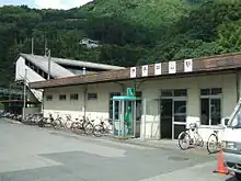 The station consists of two opposed side platforms serving two tracks. A station building serves as a waiting room. Access to the opposite platform is by means of a footbridge.[2][5][3] The station is unstaffed but a kan'i itaku agent located outside the station sells some types of tickets.[6]