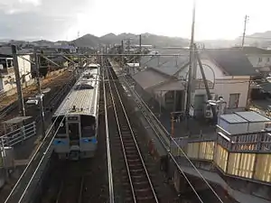 The station is served by the JR Shikoku Yosan Line and is located 187.0 km from the beginning of the line at Takamatsu.[3] Only Yosan Line local trains stop at the station and they only serve the sector between Iyo-Saijō and Matsuyama. Connections with other local or limited express trains are needed to travel further east or west along the line.[4]