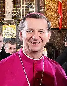 On 14 August 2004, Guzdek was appointed by John Paul II as auxiliary bishop of Kraków and titular bishop of Treba; he was consecrated on 15 September at the Divine Mercy Sanctuary by Franciszek Macharski, assisted by Józef Kowalczyk and Stanisław Dziwisz.[2] He was appointed bishop of the Military Ordinariate of Poland on 4 December 2010 by Benedict XVI;[5] he was installed as bishop on 19 December.[6]