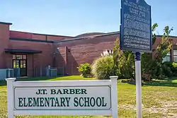 J.T. Barber School is a historic high school building for African-American students located at New Bern, Craven County, North Carolina. It was built in stages between 1951 and 1955, and is a one-story, flat roofed, concrete block school with brick veneer in the Modern style. The school consists of seven separate wings consisting of a cafeteria, a library, a gymnasium flanked on either side by classrooms, an auditorium and music room, and three additional classroom wings. Also on the property are contributing athletic fields. The school has also operated as a middle school and elementary school.[2]