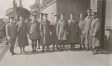 Major General O'Ryan and members of his staff on the top deck of the Leviathan, March 1919. Stood second on the left is Lieutenant Colonel J. Leslie Kincaid.