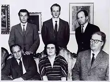 Syrjä (center in the back) with Harri Kaasalainen and Veikko Pihlajamaki, Soile Kaukovalta and Ilpo Kaukovalta in 1958