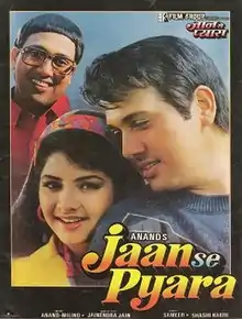 Jaan Se Pyaara is a 1992 Indian Hindi-language action-romantic comedy film directed by Anand. It stars Govinda and Divya Bharti. Aruna Irani, Kiran Kumar, Raza Murad appear in supporting roles. The film was an unofficial remake of Heart of Dragon (1985). The concept of one actor playing the role of both brothers, unlike in the original version, was borrowed from the Kannada movie Shivashankar (1990) which was also based on Heart of Dragon. It was a modest hit.[1]