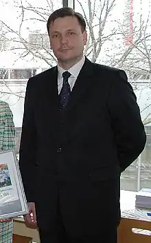 Jaanus Tamkivi (born 17 November 1959 in Kuressaare) is an Estonian politician of the Estonian Reform Party. He was Mayor of Kuressaare from 1996 to 2005, a member of the Riigikogu from 2005 to 2015, and the Minister of the Environment from 2007 to 2011.[1][2] Currently he is the chairman of Saaremaa Municipality Council.[3]