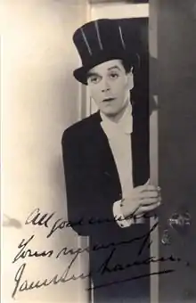 After a brief attempt to follow his late father's profession and a failure at acting in Glasgow, he became a music hall comedian under the name of Chump Buchanan and appeared on the variety stage in Scotland.[4] Moving to London and adopting the name "Jack Buchanan", he first appeared on the West End in September 1912 in the comic opera The Grass Widow at the Apollo Theatre.[2] Hardship dogged him for a while before he became famous whilst on tour in 1915 in Tonight's the Night.[1] He produced and acted in his own plays both in London and New York City.