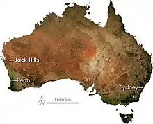 The Jack Hills are a range of hills in Mid West Western Australia. They are best known as the source of the oldest material of terrestrial origin found to date: Hadean zircons that formed around 4.404 billion years ago. These zircons have enabled deeper research into the conditions on Earth in the Hadean eon. In 2015, "remains of biotic life" were found in 4.1 billion-year-old rocks there.[1][2] According to one of the researchers, "If life arose relatively quickly on Earth ...then it could be common in the universe."[1]