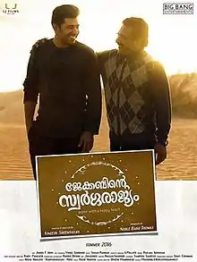 Jacobinte Swargarajyam (transl. Jacob's Kingdom of Heaven) is a 2016 Indian Malayalam-language family drama film written and directed by Vineeth Sreenivasan. The film stars Nivin Pauly and Renji Panicker.[6] It revolves around a wealthy businessman and the struggles faced by his son to clear his father's debts after a business associate cheats him. The film was released on 8 April 2016 in India and later in foreign countries.