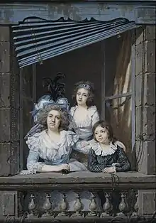 Portrait of a Woman with Her Son and Daughter in a Balcony Window (1787), an oil painting by Jacques-Antoine-Marie Lemoine