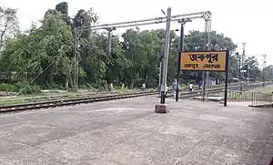The Jakpur railway station in the Indian state of West Bengal, serves Jakpur, India in Paschim Medinipur district. It is on the Howrah–Kharagpur line. It is 107 km (66 mi) from Howrah Station.[5]