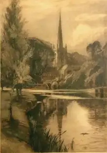 "Where Shakespeare Sleeps (Stratford-on-Avon)," a 1921 etching by James Alphege Brewer and his brother Henry Charles Brewer.