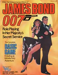 James Bond 007: Role-Playing In Her Majesty's Secret Service is a spy fiction tabletop role-playing game based on the James Bond books and films. It is designed by Gerard Christopher Klug and was published by Victory Games, a subsidiary of Avalon Hill. The game and its supplements were published from 1983 until 1987, when the license lapsed. At its time of publication, it was the most popular espionage role-playing game.[1]