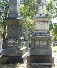 {{cite web}}: CS1 maint: unfit URL (link) - ↑ Cowlishaw James Archived 27 December 2013 at the Wayback Machine – Brisbane City Council Grave Location Search Retrieved 27 December 2013.
