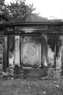 He died on 7 August 1845. He is buried in St Cuthberts churchyard in central Edinburgh just west of Princes Street Gardens. The grave lies on the small mound to the south-west of the church, backing onto the upper vaults.