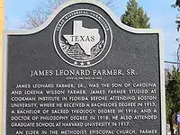 Historical marker dedicated to James L. Farmer Sr. at Wiley College in Marshall, Texas