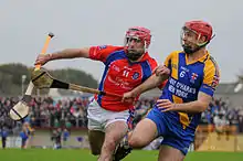 James Regan (left) playing for St Thomas' and Paul Hoban (right) playing for Loughrea in 2015