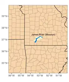 The James River is a 130-mile-long (210 km)[4] river in southern Missouri. It flows from northeast Webster County until it is impounded into Table Rock Lake. It is part of the White River watershed. The river forms Lake Springfield and supplies drinking water for the city of Springfield.