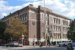 This historic building was designed by Henry deCourcy Richards, and was built between 1913 and 1914. It is a three-story, five-bay, reinforced concrete building with brick facing and granite and terra cotta trim, and was designed in a Classical Revival-style. It features decorative panels and a center entrance topped by an entablature.[2] The school was named for American Romantic poet, critic, editor, and diplomat James Russell Lowell (1819-1891).