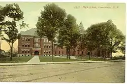 Jamestown High School (JHS) is a public high school located in Jamestown, New York, United States. It is the sole public high school within the city limits of Jamestown and also serves some students within the surrounding towns of Ellicott, Kiantone, Busti, and Carroll.[3] The school educates high school freshmen, sophomores, juniors, and seniors. Jamestown High School is the sole high school within the Jamestown Public Schools district.