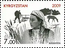 Jamila (Russian: Джамиля [dʐəmʲɪˈlʲa], Kyrgyz: Жамийла, Jamila, [d͡ʒɑmijˈlɑ]) is the first major novel by Chingiz Aytmatov, published originally in Russian in 1958. The novel is told from the point of view of a fictional Kyrgyz artist, Seit, who tells the story by looking back on his childhood. The story recounts the love between his new sister-in-law Jamilya and a local crippled young man, Daniyar, while Jamilya's husband, Sadyk, is "away at the front" (as a Soviet soldier during World War II).