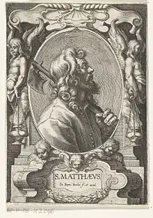 Barbé published a number of devotional books such as the SS. Apostolorum et Evangelistarum Icones cum suis parergis ('Images of the Apostles and Evangelists with their frames') dated 1620. The designs were made by Theodoor van Loon. The work contains bust-length portraits of the Holy Family, the four evangelists and the 12 apostles. Each portrait is set in a sculptural frame, as is referred to in the title of the work.[9]